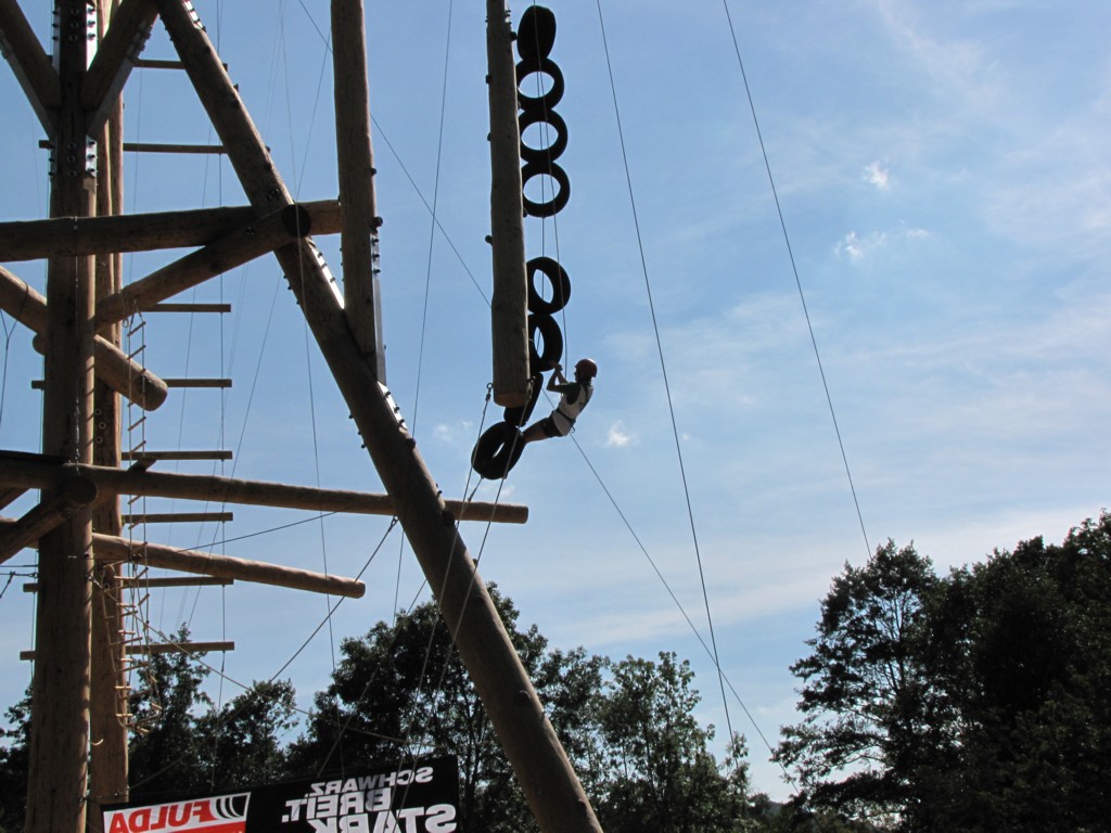 Der toprope gesicherte Hochseilgarten TEAM Tower in Poppenhausen bietet für jeden das richtige Maß an Herausforderung. Gesichert und motiviert durch die anderen Teilnehmer dürft ihr bis zu 21m Höhe an dem imposanten Turm erklimmen.